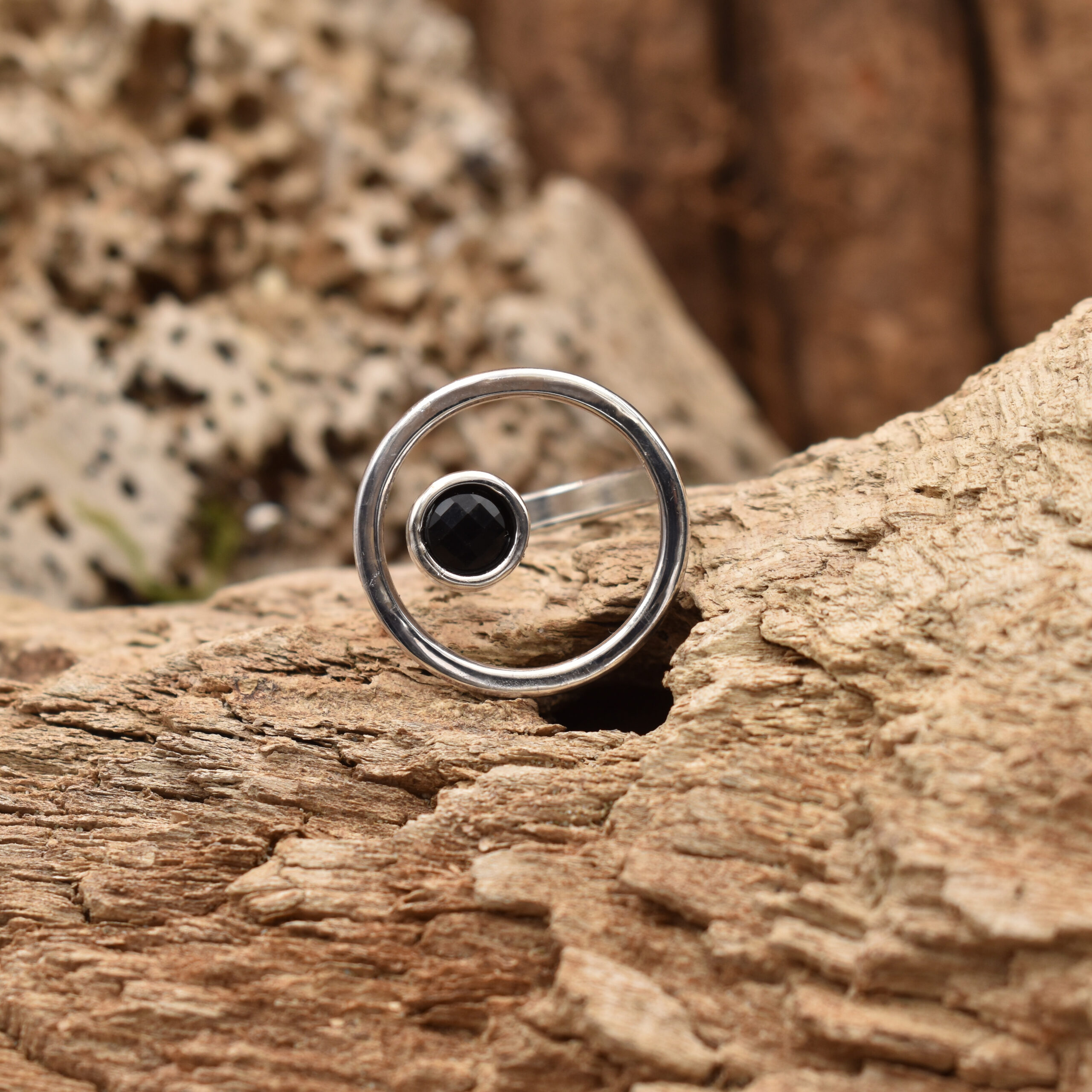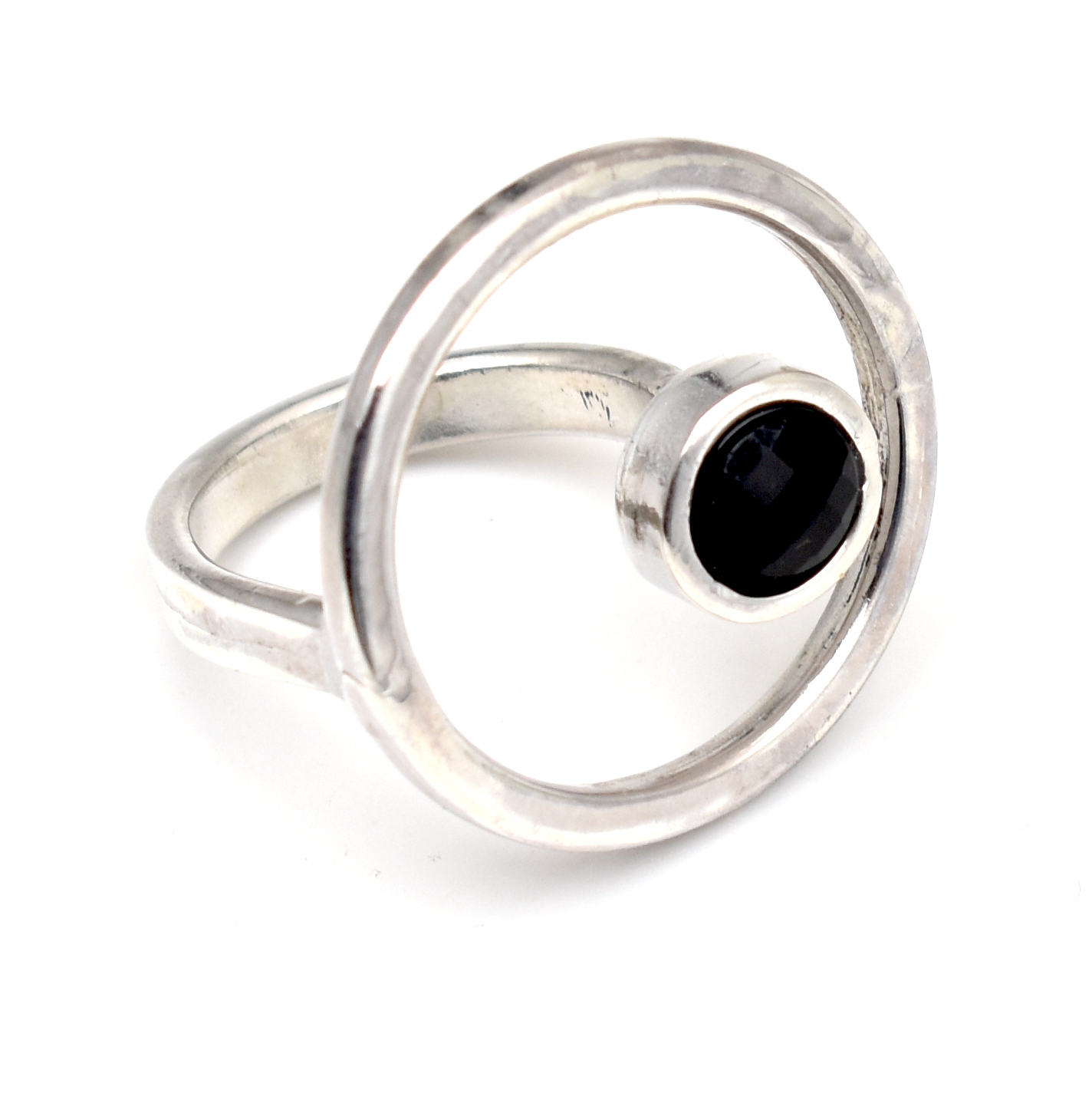 Anello della collezione Design in argento 925 e onice disegnato e realizzato a mano nel nostro laboratorio orafo. Made in Italy
