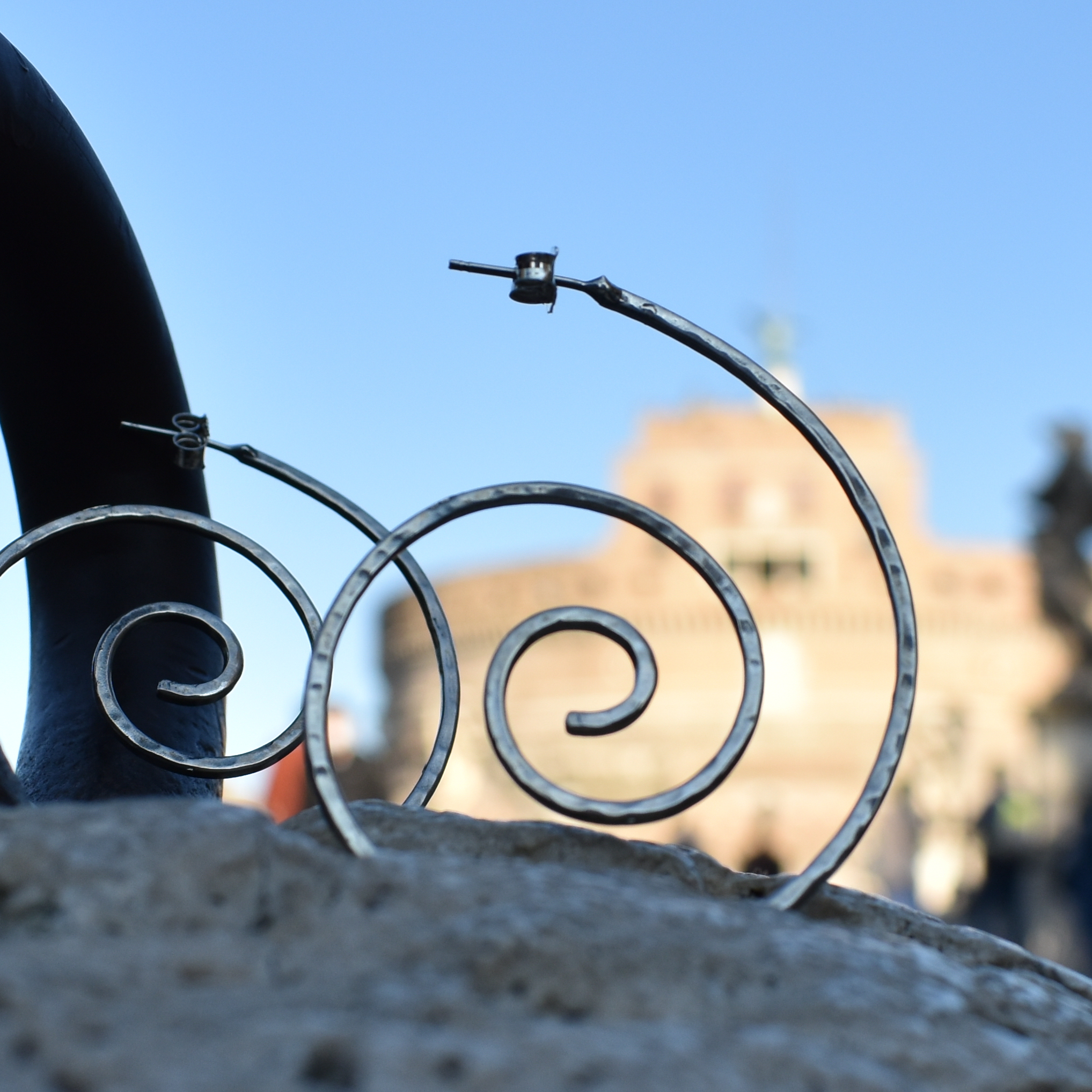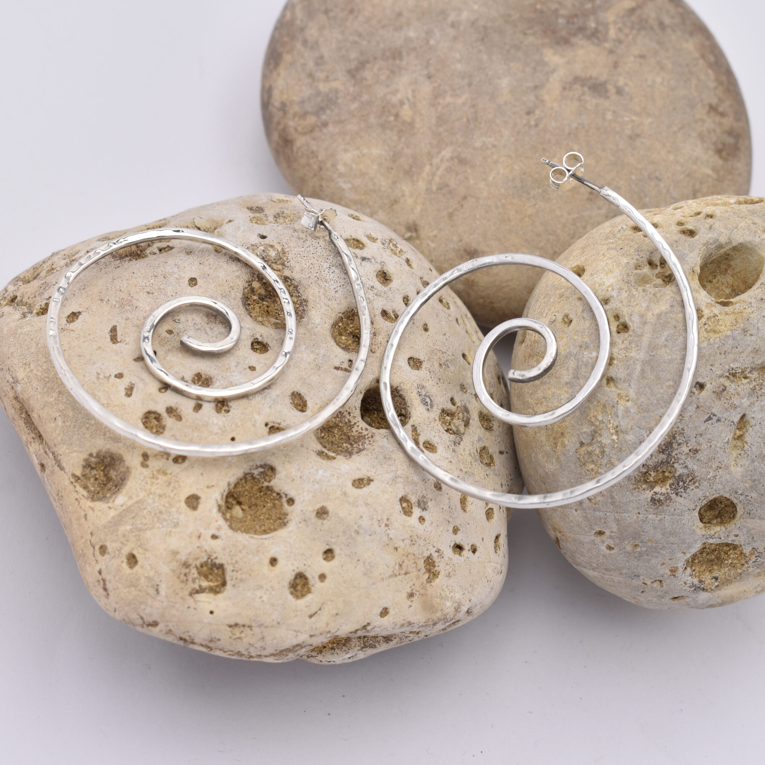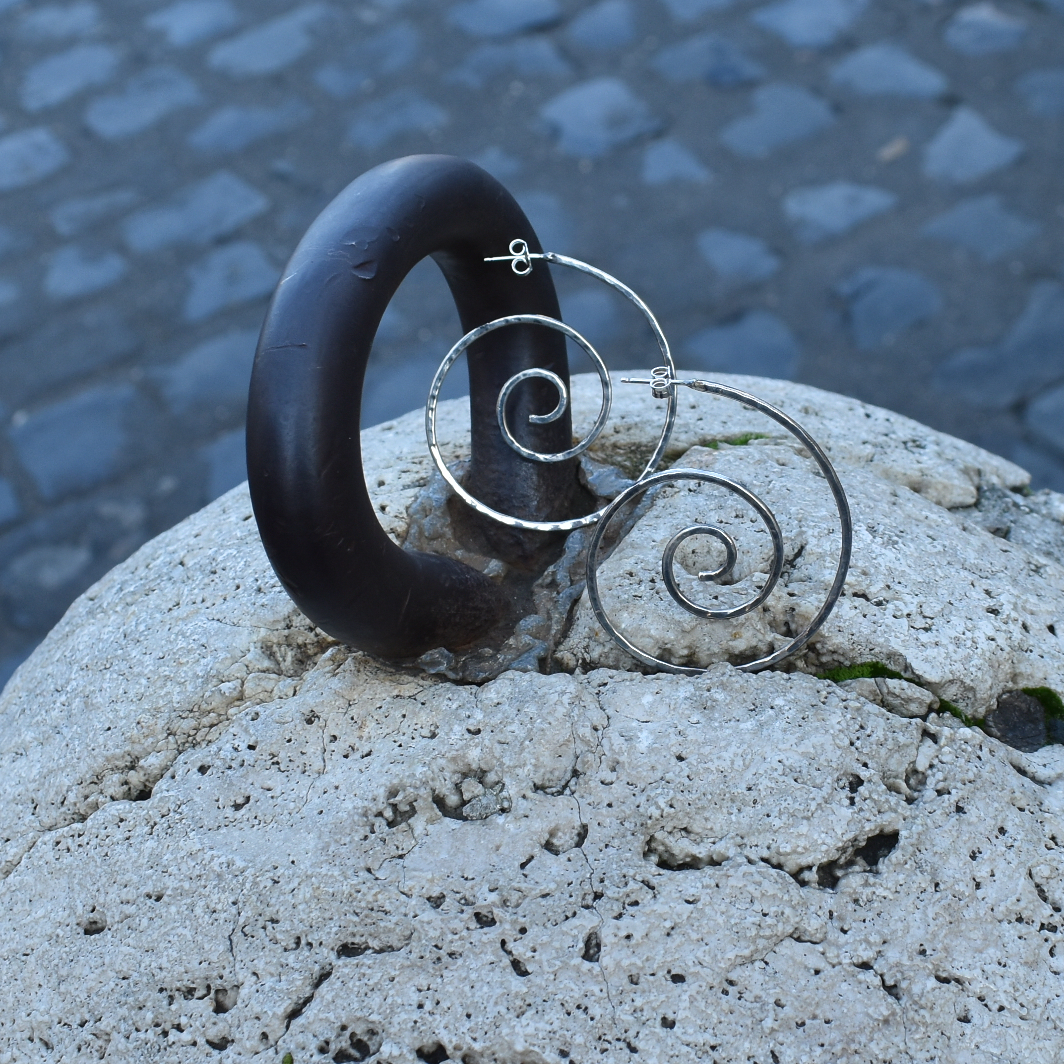 Orecchini martellati a spirale argento 925 realizzato nel nostro laboratorio in Italia, Handmade in Italy