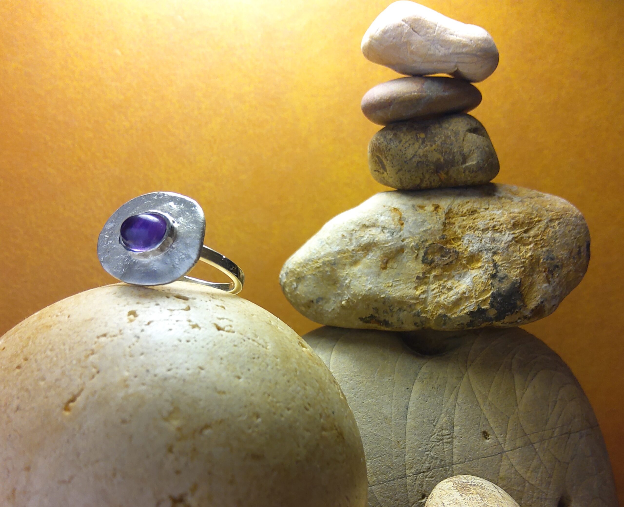 Anello zen argento 925 e lapislazuli disegnato e realizzato nel laboratorio orafo Il Galeone a Siena allo “stone balance”: l’arte delle pietre in equilibrio, la forma artistica attraverso la quale si ritrova l’equilibrio interiore, è una disciplina mentale che aumenta la sensibilità e la percezione dello scambio di energia tra il soggetto e la pietra da porre in equilibrio.