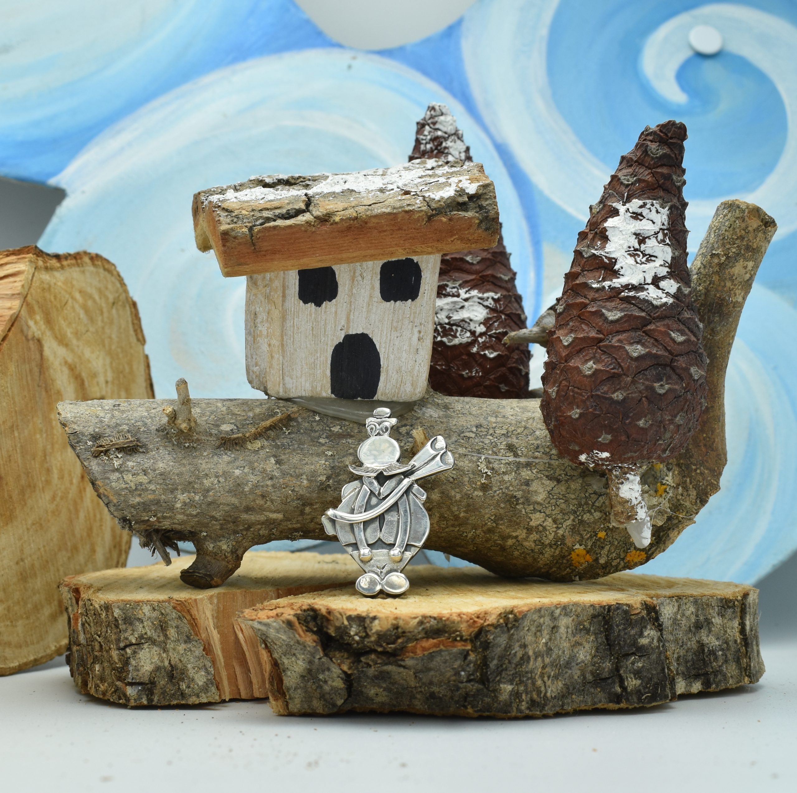 Pendente Cacciatore di cappuccetto rosso argento 925 disegnato e realizzato con tecniche artigianali nel nostro laboratorio orafo. Made in Italy