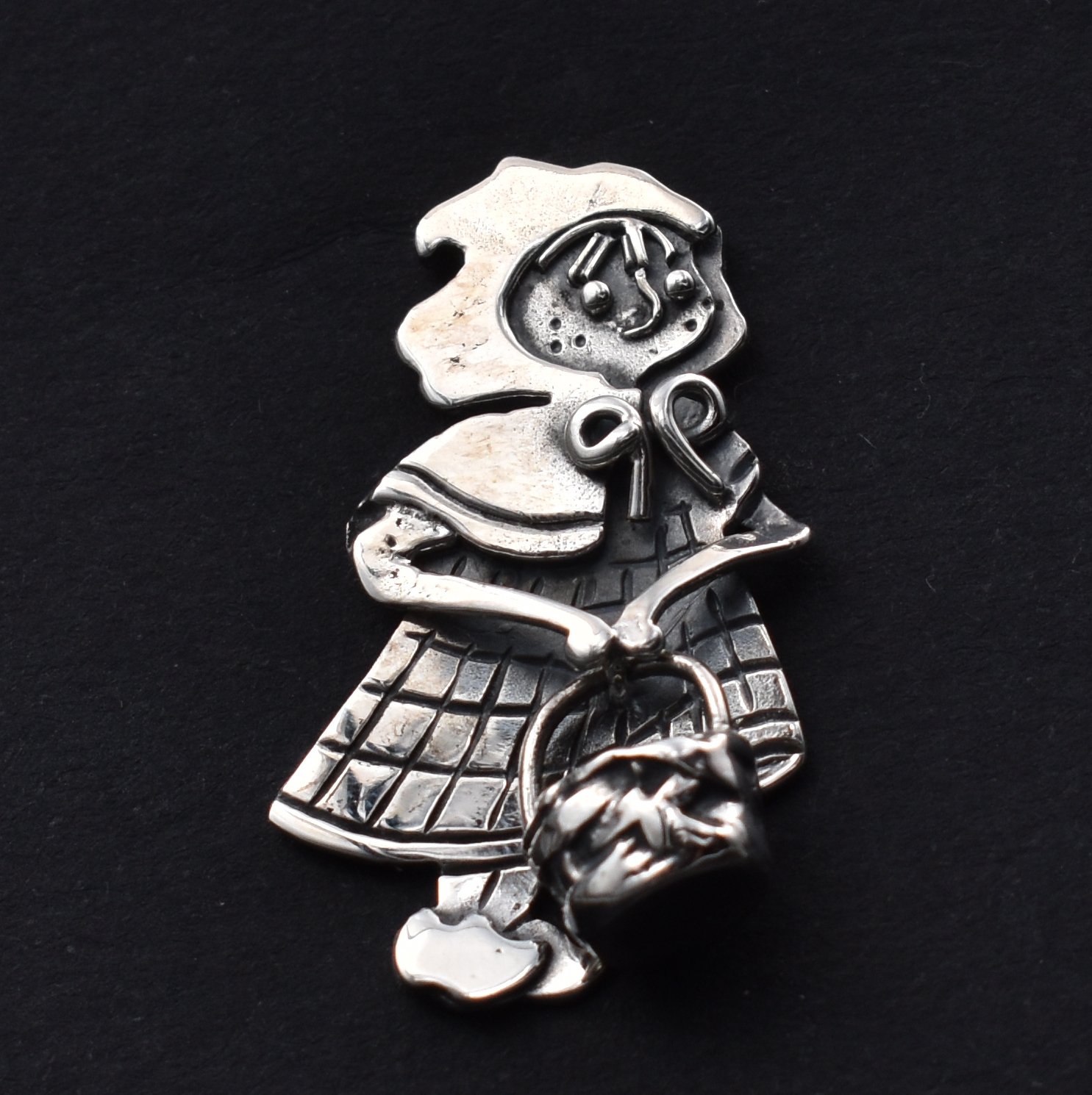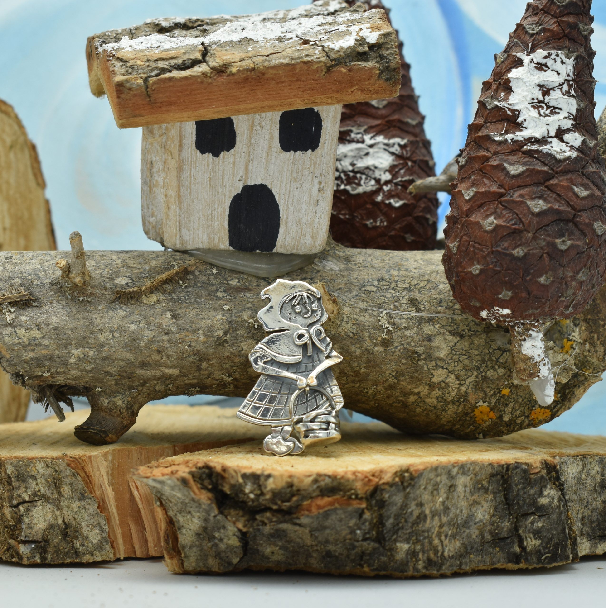 Pendente Cappuccetto Rosso argento 925 disegnato e realizzato con tecniche artigianali nel nostro laboratorio orafo. Made in Italy