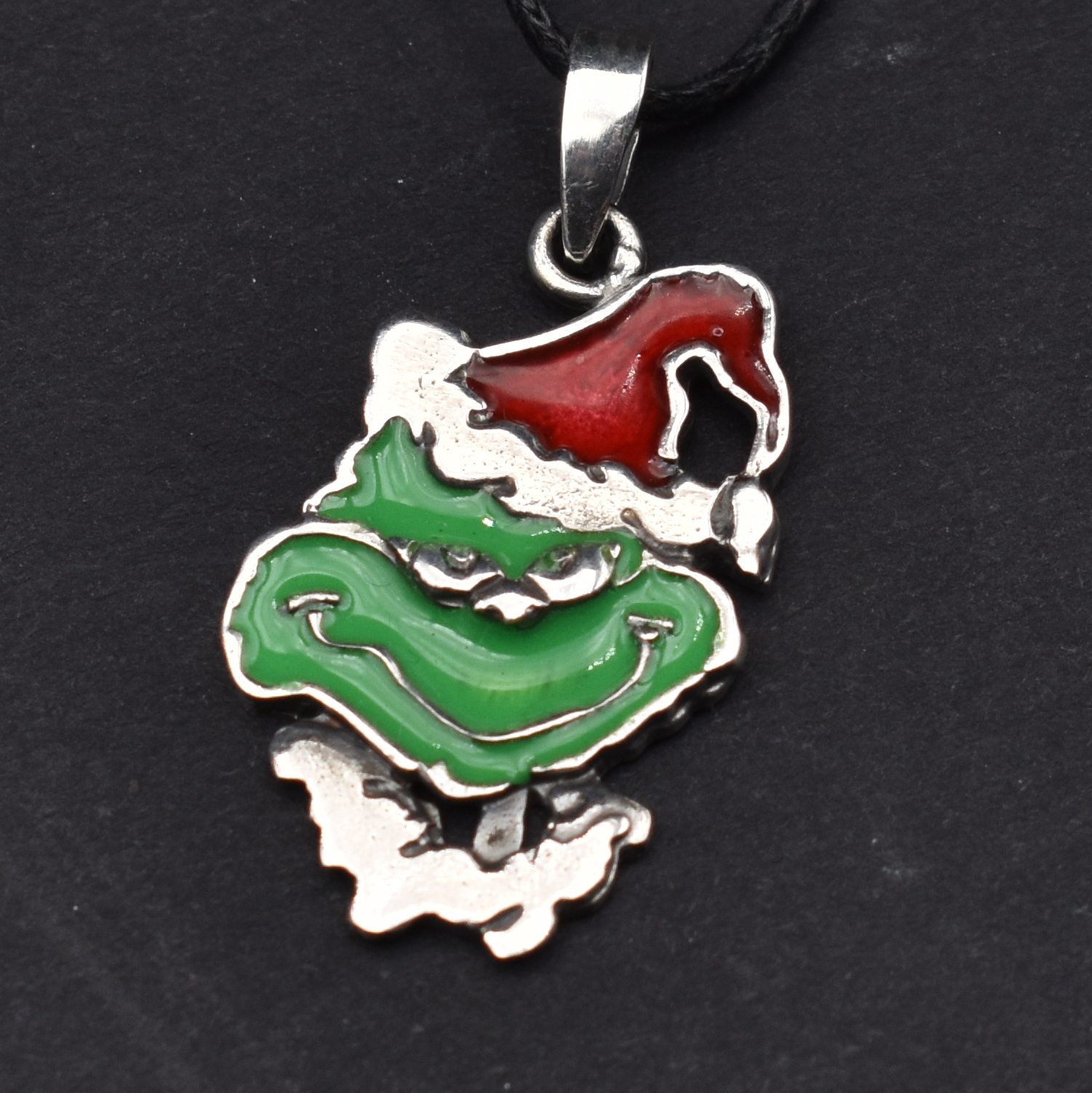 Pendente Grinch, questo pendente è stato progettato e realizzato in argento 925 nel nostro laboratorio di Siena.
