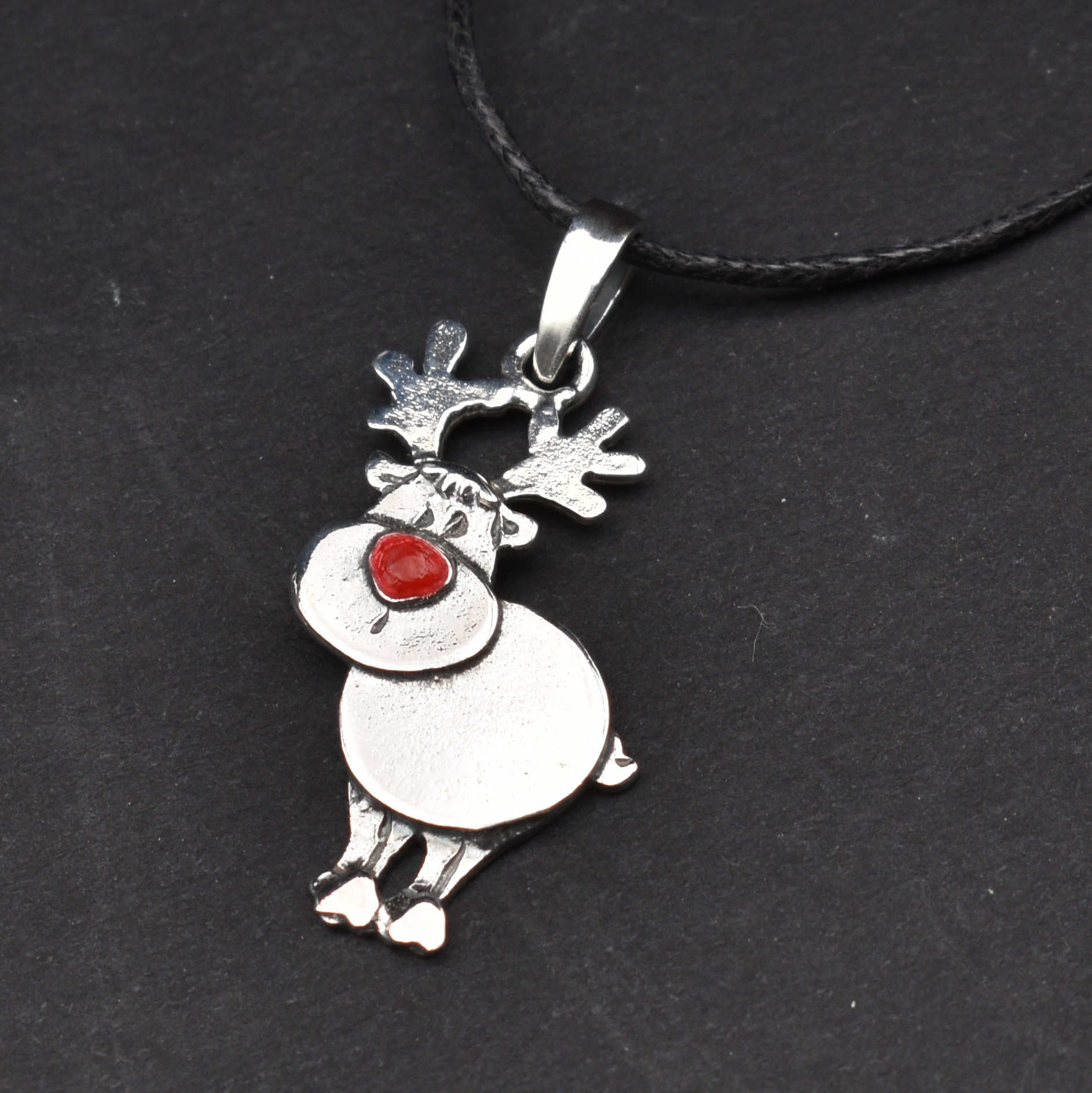 Pendente Renna di Natale, questo pendente è stato progettato e realizzato in argento 925 nel nostro laboratorio di Siena.