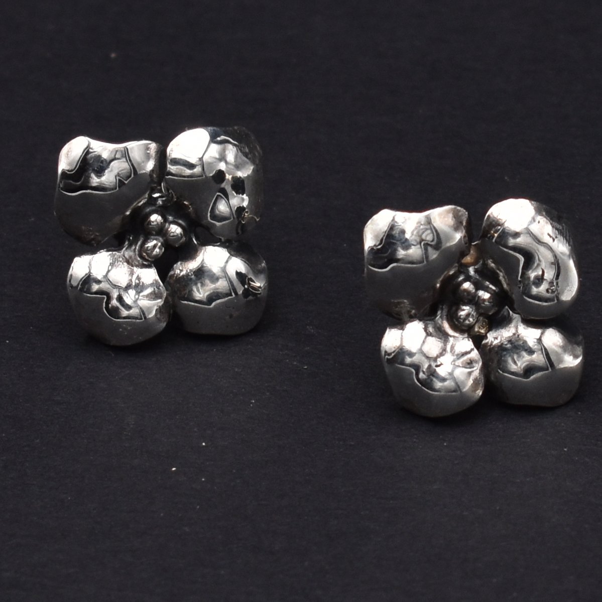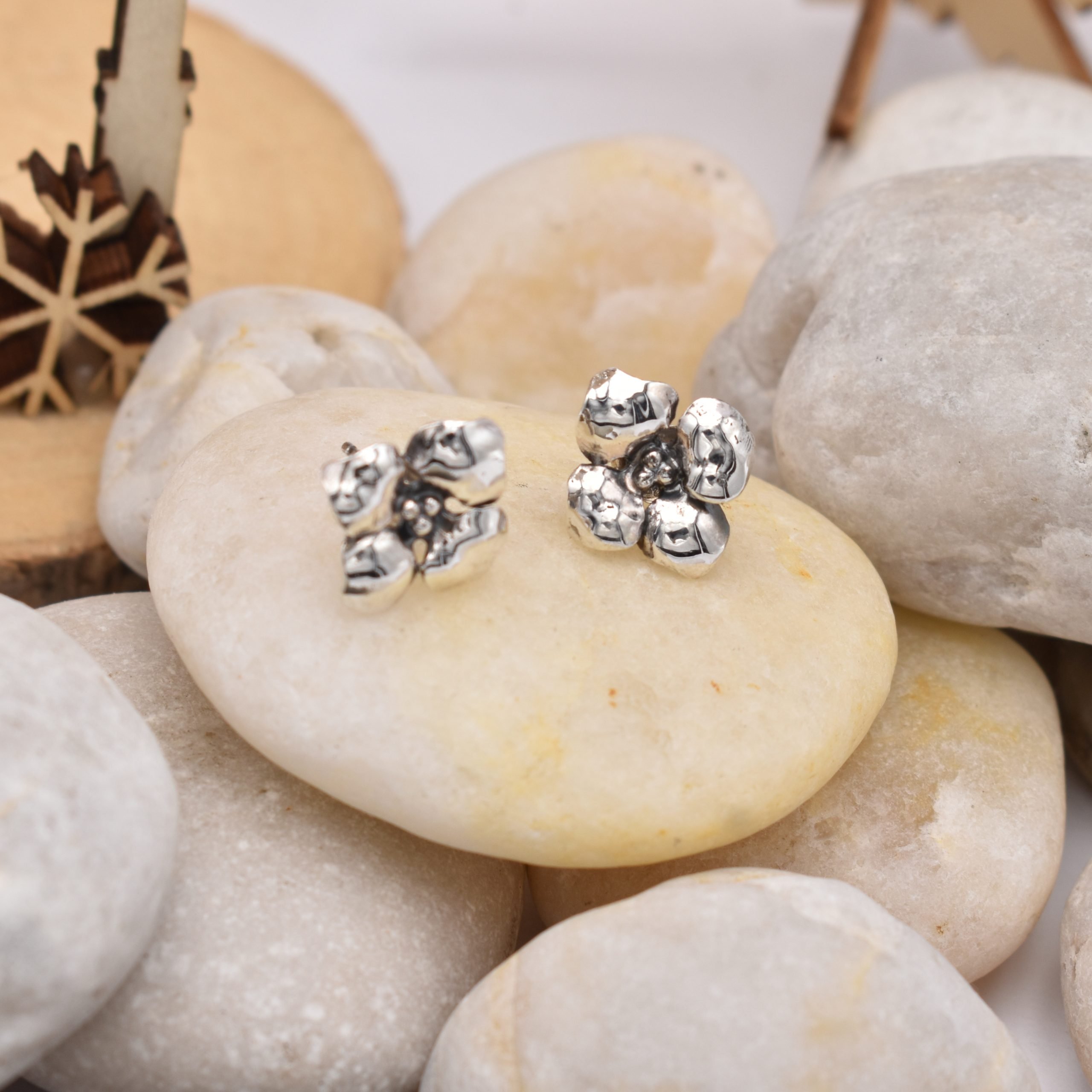Orecchini fiore di ortensia argento 925 disegnato e realizzato a mano nel nostro laboratorio artigiano dai maestri orafi del Galeone